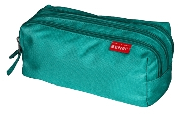 Estuche con triple compartimento y cierre de tres cremalleras. Incluye un forro interior y tiradores textiles para un manejo cómodo. Especificaciones: -Color: Verde azulado -Compartimentos: 3 -Medidas: 21 x 7 x 11 cm