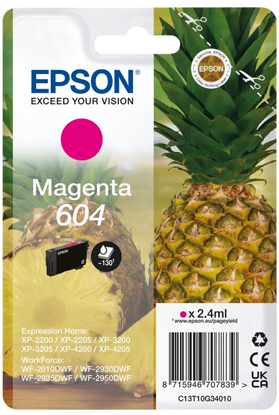 Las fiables tintas individuales de cuatro colores de Epson son ideales para la impresión diaria. La gama ofrece cartuchos asequibles adaptados a cada tipo de usuario, en tamaño estándar o XL, en formato único o multipack. Encuentra fácilmente las tintas en la tienda buscando la imagen de la piña.