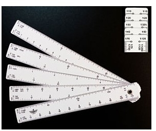 Escalímetro de abanico formado por 5 reglas graduadas a ambos lados, en total 10 escalas. Longitud 18cm.
