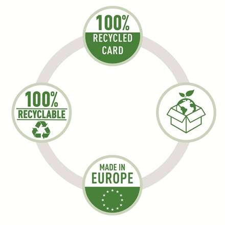 -Hecho de cartón resistente y duradero, 100% reciclado, 100% reciclable y con certificación FSC.