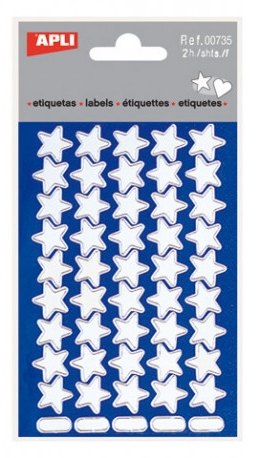 Estrellas autoadhesivas. PLATA. Cantidad : 2 Tipo de producto: Gomets Color: Plata Forma del gomet: Estrella Pack de gomets: En bolsa Tipo de adhesivo del gomet: Permanente