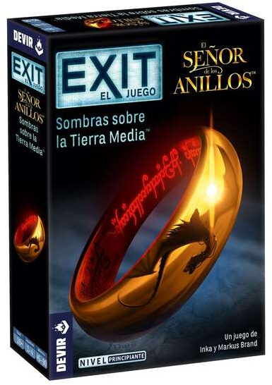 ¡La Tierra Media corre un grave peligro! Frodo y la Comunidad se dirigen hacia Mordor para destruir el Anillo Único. ¡Pero necesitan vuestra ayuda! Poneos en marcha y cumplid las misiones que Gandalf os encomendará. ¿Conseguiréis ganar tiempo suficiente para que Frodo pueda llegar al Monte del Destino? Exit: El Señor de los Anillos, sombras sobre la Tierra Media es un juego de escape cooperativo diseñado por Inka y Markus Brand, inspirado en el universo de fantasía épica creado por J.R.R. Tolkien. Se puede disfrutar en solitario o en un grupo de hasta 4 personas, a partir 10 años, en partidas que pueden durar entre 60 y 90 minutos. A través de 90 cartas, un cuaderno y algunos objetos especiales, los jugadores podrán explorar e interactuar con el entorno y todo lo que vayan encontrando en su camino para tener éxito en la aventura. La saga de juegos Exit nos trae en cada caja todo lo necesario para vivir la emoción de las mejores Escape room o salas de escape desde el salón de casa. Cada título tiene una temática y una historia completamente diferente en la que los jugadores son los protagonistas.