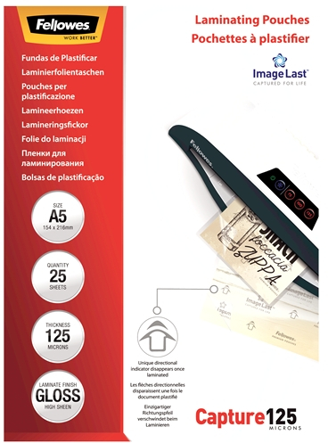 Fellowes Pack de 25 Fundas para Plastificar Brillo A5.