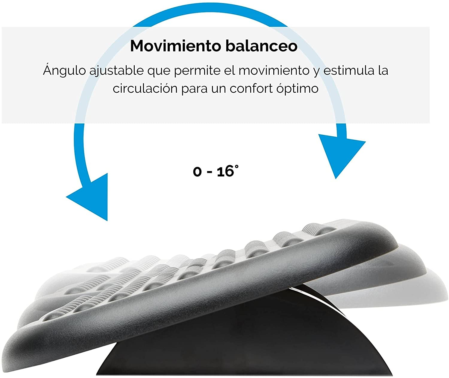 -Reposapiés ergonómico de inclinación ajustable con tan solo la presión de los pies sobre la plataforma, se puede inclinar en ambos sentidos para proporcionar el ángulo más cómodo, ángulo de inclinación de 0° a 15°.