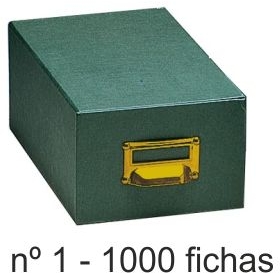 Fichero carton forrado verde cajon numero 1 para 1000 fichas del nº1 - 65x95 mm - Tirador metalico.