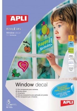 Film transparente para ventanas.Medidas: 210 x 297mmCantidad hojas : 5Tamaño de la hoja: Din A4