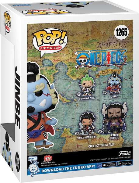 ¡Embárcate con el timonel de los Piratas de Sombrero de Paja, Pop! ¡Jinbe! ¡Existe una probabilidad de 1 entre 6 de que encuentres la combinación de colores alternativa de Pop! Jinbe. ¡Amplía tu colección de One Piece añadiendo Pop! Jinbe a tu tripulación de escorbuto. Las figuras de vinilo miden aproximadamente 12,2 cm de altura.