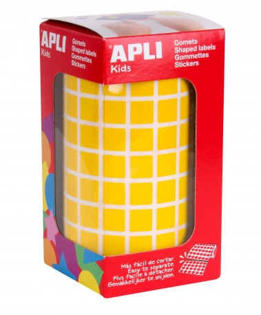 Gomets autoadhesivos cuadrados color amarillo, equiláteros, con un diámetro de 10 mm, en estuche.
