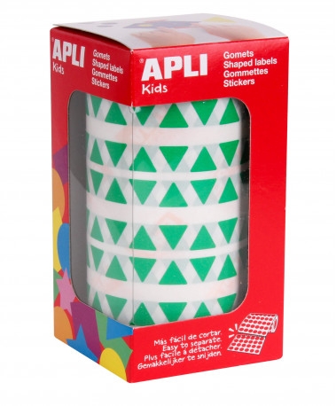 Gomets autoadhesivos en forma de triángulo color verde. Equiláteros, con un diámetro de 10,5 mm