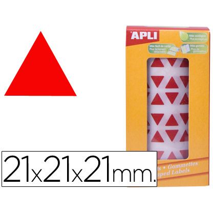 Etiquetas de diferentes formas y colores en rollo. Triángulos: 20 x 20 x 20 mm. Cantidad por rollo: 2.832 gomets. Cuadrados: 20 x 20 mm. Redondo 20mm de diámetro. Cantidad por rollo: 1.770 gomets