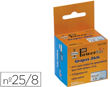 Grapas flecha powerhit 26/6 caja de 5000 unidades.