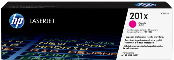 CARTUCHO DE TONER HP CF403X HP 201X ORIGINAL DE COLOR MAGENTA CON UN RENDIMIENTO DE 2.300 PAGINAS.
