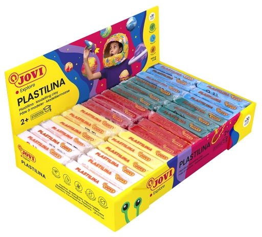 La PLASTILINA JOVI es una pasta para modelar 100% vegetal para jugar en divertidos colores, muy moldeable, adecuada a partir de los 2 años, sin gluten y que nunca se seca. A diferencia de las plastilinas minerales, permite hacer figuras con mayor volumen. Además, podrás jugar sin parar porque nunca se seca. Se moldea y desmolda con facilidad. Ideal para realizar figuras en volumen, su versatilidad también admite el uso de moldes y modeladores así como otras técnicas de pintado con PLASTILINA en papel.