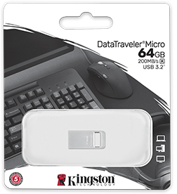 DataTraveler® Micro es una unidad USB ultracompacta y ligera, ideal como espacio de almacenamiento plug-and-stay, compatible con ordenadores, impresoras, consolas de juegos y mucho más. La unidad tiene una carcasa metálica de alta calidad y bajo perfil y una ranura de acoplamiento integrada para evitar interferencias cuando se conecta a los puertos USB. DT Micro ofrece una velocidad máxima de USB 3.2 Gen 1 de 200 MB/s de lectura y una capacidad máxima de 256 GB para transferir y almacenar rápidamente archivos de gran tamaño como películas, música, juegos y fotos.