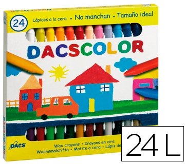 Lápices de cera suaves y deslizantes. Colores intensos. Barritas resistentes (ceras semiblandas). No manchan. Se pueden mezclar. Altura de la cera:77 mm. Diámetro de la cera: 10 mm.