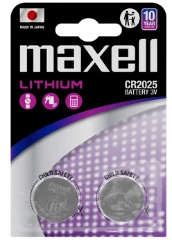 Maxell Pack de 2 Pilas Litio de Boton CR2025 3V Especificaciones: -Tipo de batería: CR2025 Litio -Voltaje de la pila: 3V
