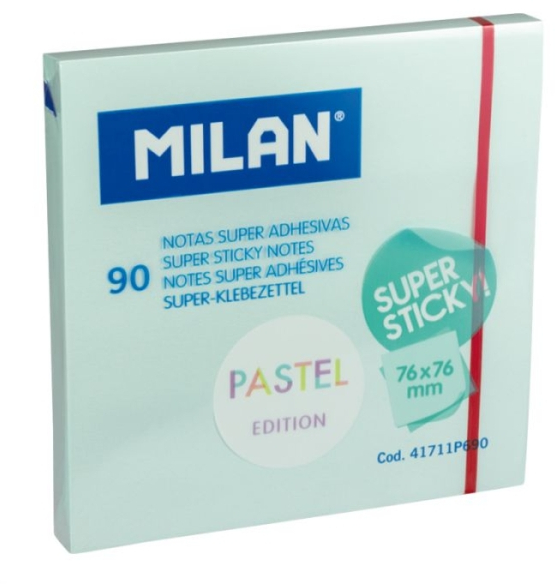 Notas adhesivas removibles "super sticky" con una mayor permanencia, incluso en superficies rugosas. Características: -Bloc de 90 notas -Color: Azul Pastel -Super adhesivas -Medidas: 76mm x 76mm