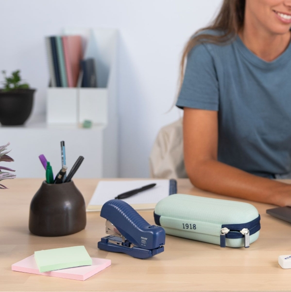 Estuche portatodo ovalado semirrígido que ofrece una gran protección, color verde. Colección 430 since 1918, inspirada en los colores y diseño originales de las gomas de borrar MILAN, fabricadas en España desde 1918. Compartimento interior de malla e interior aterciopelado, para proteger el contenido de posibles rasguños. Ideal para llevar cables, complementos electrónicos o incluso gafas.