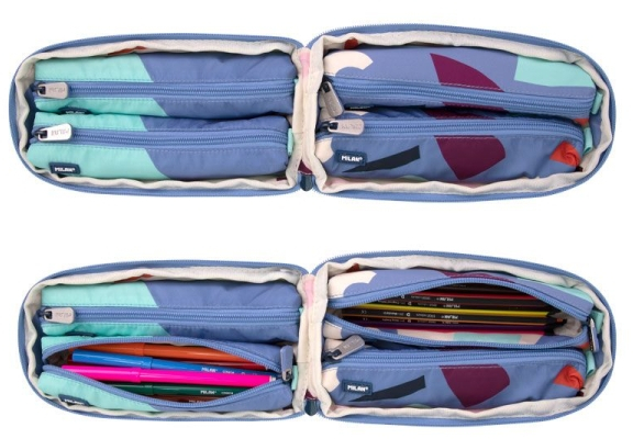Kit 4 estuches con contenido, que permite mantener el material escolar siempre ordenado y de fácil acceso. Los 4 estuches interiores se pueden extraer y volver a colocar. Serie Fun Animals, en tonos de color azul y verde turquesa. Una colección con la paleta de colores The Fun. Las distintas formas de un collage y un divertido hipopótamo en relieve se convierten en los protagonistas de esta colección.
