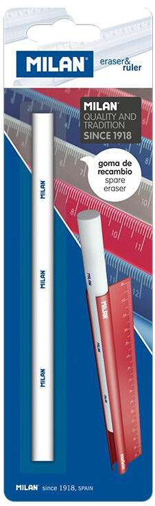 Goma cilíndrica blanca de recambio para eraser & ruler. Caracteristicas: -Goma de plastico suave. -No abrasiva. -Borrar lapiz sobre todo tipo de superficies. -No daña el papel. Especificaciones: -Blister de 1 ud.