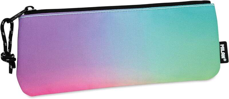 Estuche portatodo pequeño plano Serie Sunset. Una combinación de colores degradados inspirados en el atardecer, acompañados de detalles en blanco y negro. Tiradores de las cremalleras con cuerda. Tejido exterior 'ripstop': ligero y resistente a la rotura y rasgaduras. Utiliza una técnica especial que teje hilos gruesos de refuerzo a intervalos regulares en un patrón entrecruzado.