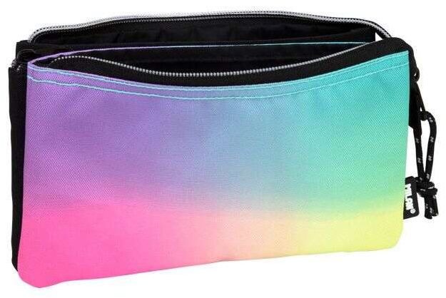 Estuche portatodo con 2 cremalleras y 5 compartimentos, para poder organizar y repartir el contenido Serie Sunset. Una combinación de colores degradados inspirados en el atardecer, acompañados de detalles en blanco y negro. Tiradores de las cremalleras con cuerda. Tejido exterior 'ripstop': ligero y resistente a la rotura y rasgaduras. Utiliza una técnica especial que teje hilos gruesos de refuerzo a intervalos regulares en un patrón entrecruzado.