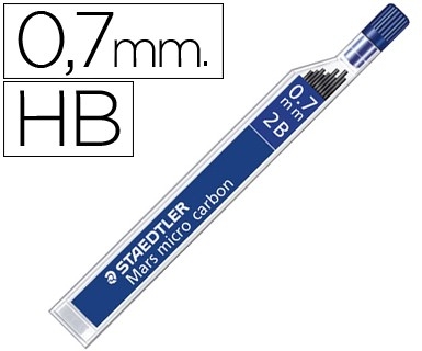 Minas Staedtler Mars micro. Minas de carbono. Trazo de la mina 0,7 mm. Dureza HB. Tubo con 12 minas.