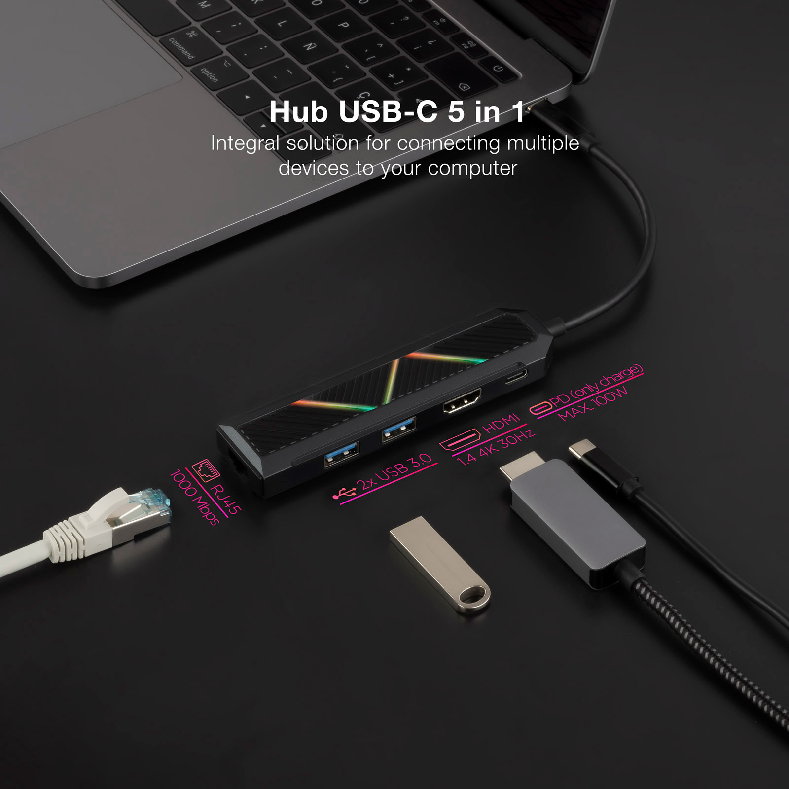 Nanocable 5 en 1 Hub USB-C 3.0
