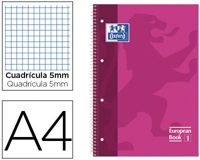 Bloc espiral Oxford european book tapa extradura din A4 80 hojas cuadricula 5 mm color rosa