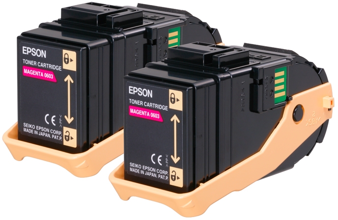TONER MAGENTA ORIGINAL EPSON PACK 2 UNIDADES 0603 CON REF. C13S050603 Y UNA CAPACIDAD DE 7.500 PAGINAS CADA UNO.