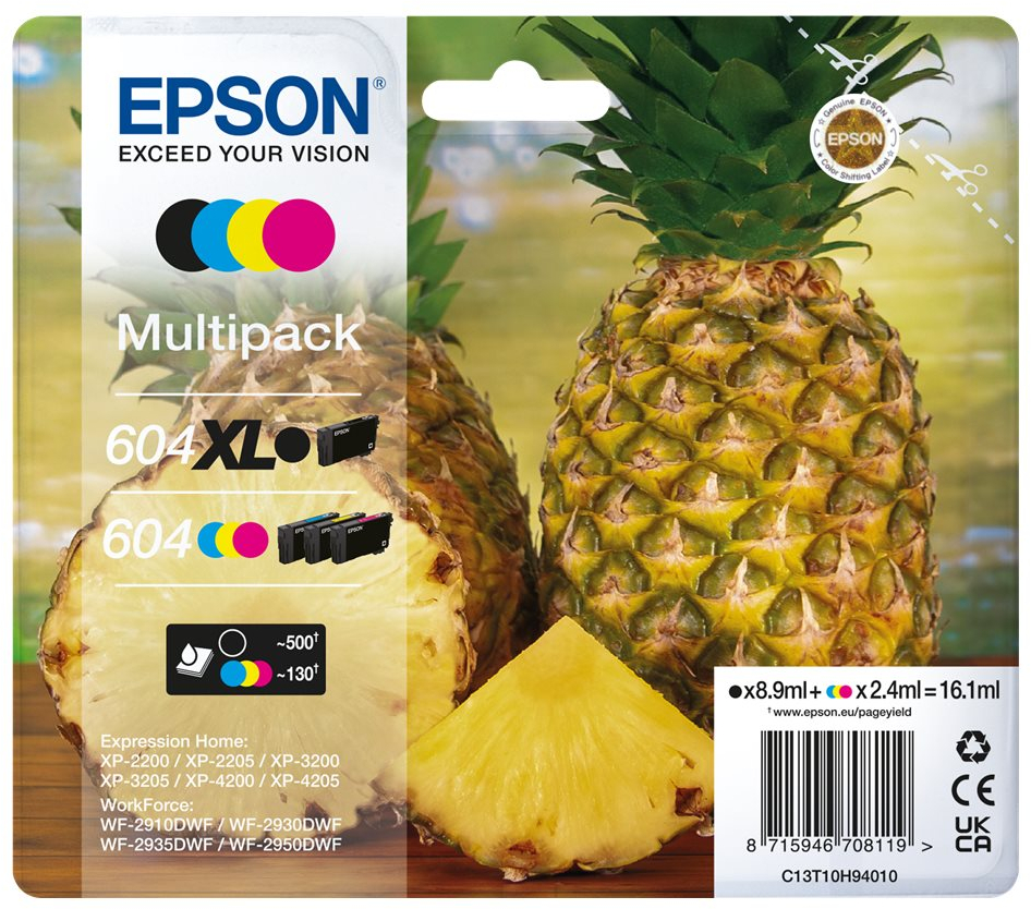 Disfruta de copias fiables con una inversión mínima gracias a las tintas Epson 604 en cuatro colores. Con la combinación de tintas negras pigmentadas y de colores a base de colorante, este pack de tintas crea copias claras y llenas de color.