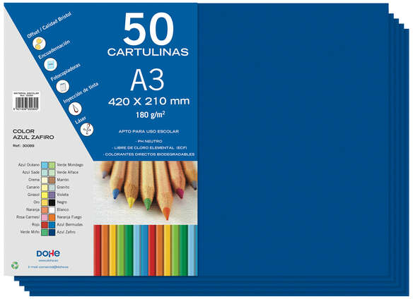 Más información sobre PACK 50 Cartulinas A3 - Gramaje de 180g - Azul Zafiro