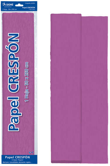 Papel crespón o pinocho de 30 g con crepado al 60 %. Ideal para manualidades, decoración, regalos, y todo tipo de aplicaciones. Se sirve en bolsas individuales con una hoja de 50 x 250 cm.