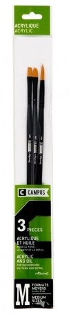 Pinceles Campus Acrílico, tres unidades surtidas, especial para acrílico y óleo. Tamaño: M