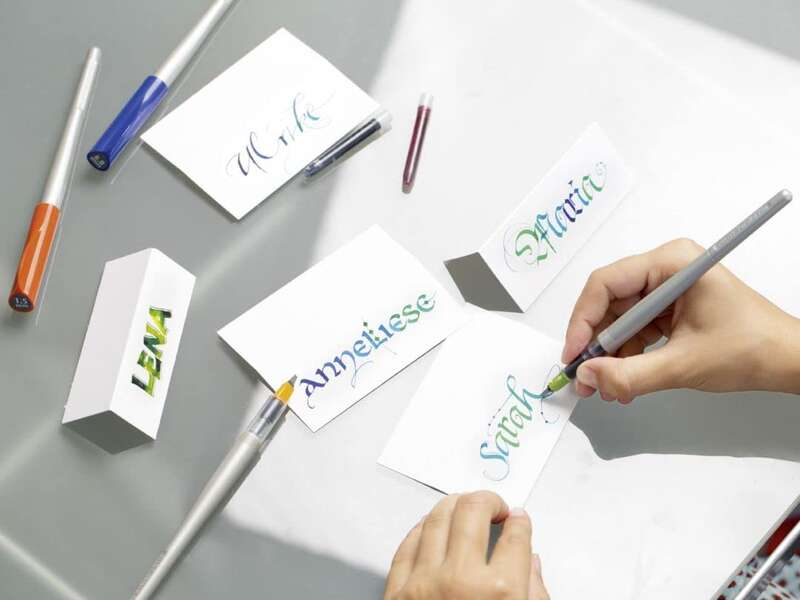Pluma ideal para caligrafía. Plumín especial que permite realizar 2 anchos de trazos gracias a las 2 placas paralelas que lo componen. 4 tamaños de plumín. Puntos en: 1.5 mm (cuerpo rojo), 2.4 mm (cuerpo naranja), 3.8 mm (cuerpo verde) y 6.0 mm (cuerpo azul)