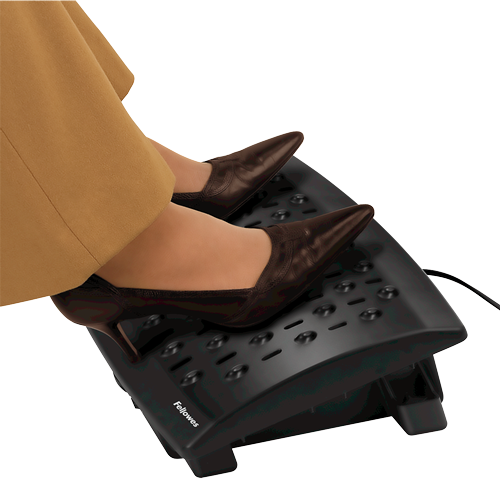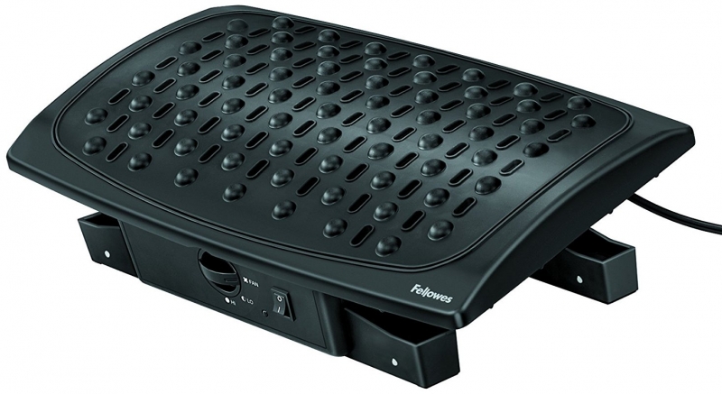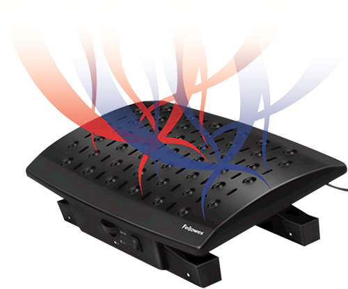 Reposapiés con sistema de calor/aire regulable que permite tener los piesa la temperatura deseada, ayudando a tener una situación más confortable en el puesto de trabajo. 3 niveles de regulación de temperatura: aire, nivel calor bajo (200w), nivel calor alto (500w). Evita las molestias de la espalda y la incomodidad de las piernas, manteniendo la postura correcta. Superficie de efecto masaje que favorece la circulación de las piernas. Longitud de cable 1.25 m. Regulable en altura. Certificado según la norma iso9241. Medidas: 415 x 250 x 135 mm.