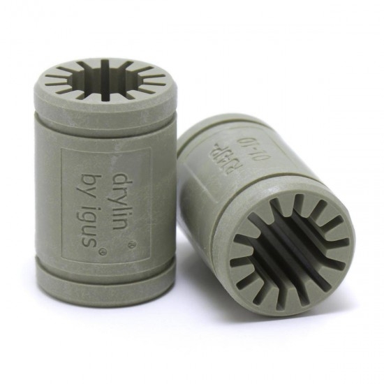 Rodamiento lineal de la marca alemana Igus desarrollado para la sustitución de los rodamientos LM10UU lineales de bolas.