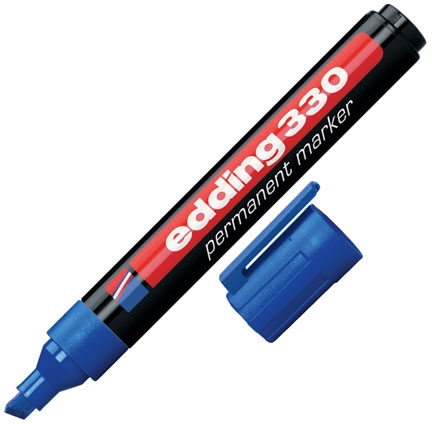 Punta biselada y cuerpo redondo de plástico. Tinta permanente de secado rápido. Trazo de 1,5 a 3 mm. Recargable. Ideal para escribir sobre superficies no porosas.
