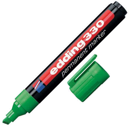 Punta biselada y cuerpo redondo de plástico. Tinta permanente de secado rápido. Trazo de 1,5 a 3 mm. Recargable. Ideal para escribir sobre superficies no porosas.