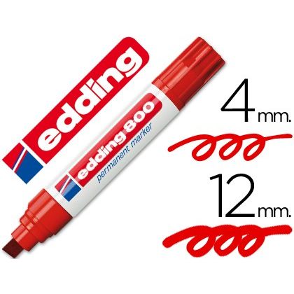Marcador permanente con punta biselada sintética. Cuerpo de aluminio, rellenable. Secado instantáneo. Resistente al agua y la luz. Tinta casi inodora. Trazo aprox entre 4 y 12 mm.