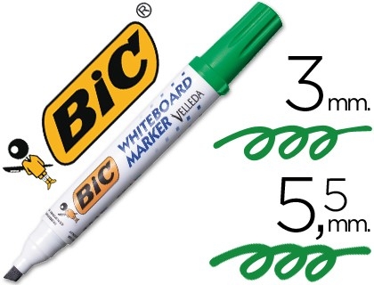 Rotulador para pizarra blanca con punta gruesa biselada.