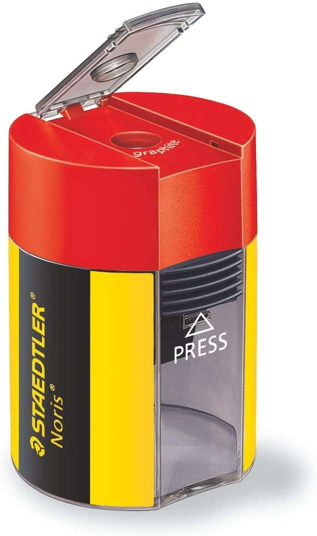 -Lapiceros clásicos de dureza media, HB 2M goma de borrar blanca Staedtler Mars Plastic y sacapuntas con tapa y depósito.