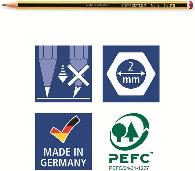 3 lápices NORIS 120-2(HB) de grafito para escribir y dibujar. Doble encolado de mina contra roturas + 1 goma de borrar MARS PLASTIC. Características: -Blíster con 3 lápices NORIS 120-2(HB) de grafito. -Graduación HB. -Alta calidad.