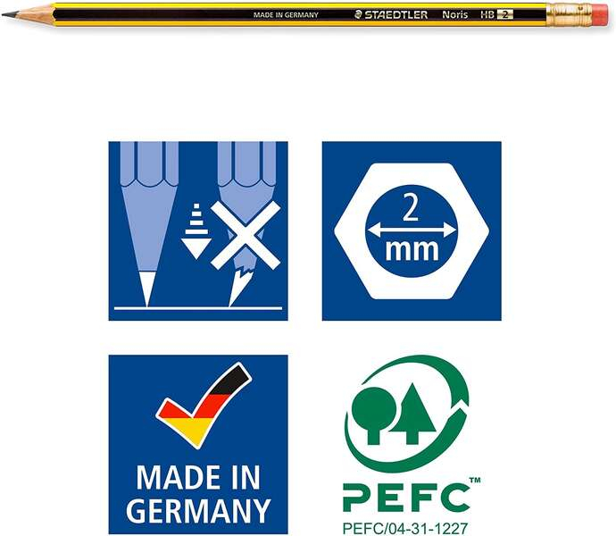 3 lápices NORIS 122 graduación HB, con goma, lápices de grafito para escribir y dibujar. Doble encolado de mina contra roturas.