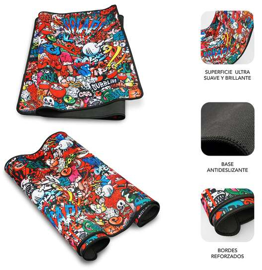 El diseño Graffiti es una alfombrilla de ratón inspirada en la versión más urbana del público joven, que busca expresar su imaginación y creatividad en lugares inesperados. Fabricada con caucho antideslizante, esta alfombrilla garantiza durabilidad y cuenta con un tamaño extra grande de 900x400 mm, ofreciendo mucho espacio para juegos profesionales o trabajos de oficina. Sus bordes cosidos evitan que se deshilache y su tecnología de impresión de alta precisión y calidad permite obtener más detalles de imagen. Además, es fácil de limpiar y cuenta con alta elasticidad.