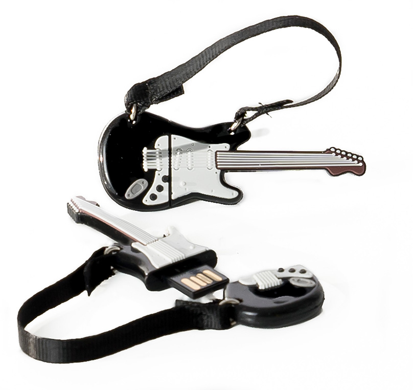 Guitarra Black & White Memoria USB 2.0 32GB Caracteristicas: -Capacidad: 32 Gb -Tapa: Si -Colgable: Si -Lanyard: No -Material: Metal, plastico -Diseño: Guitarra Black & White
