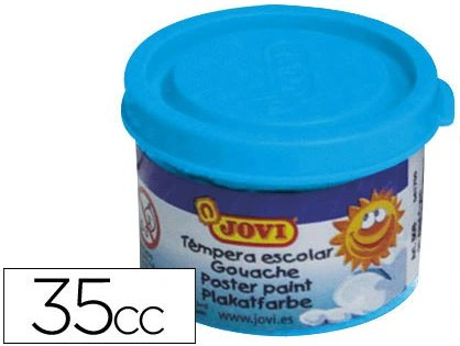 Témpera Jovi azul cyan, 40 cc. Pintura al agua, opaca y de secado rápido. Ideal para utilizar en papel, cartulina, madera, tela, pasta para modelar y arcilla.