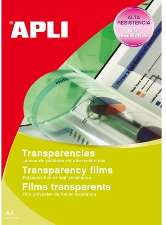 Caja de 20 Transparencias de Poliester A4 para Impresoras Laser y Fotocopiadora. Apli 1268