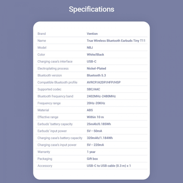 Auriculares Vention Bluetooth inalámbricos Tiny T11
