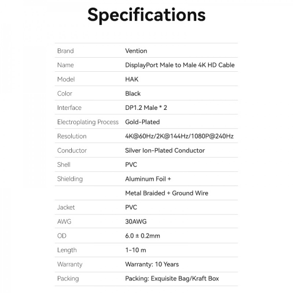 VENTION Cable DisplayPort a DisplayPort - 1m - Color Negro